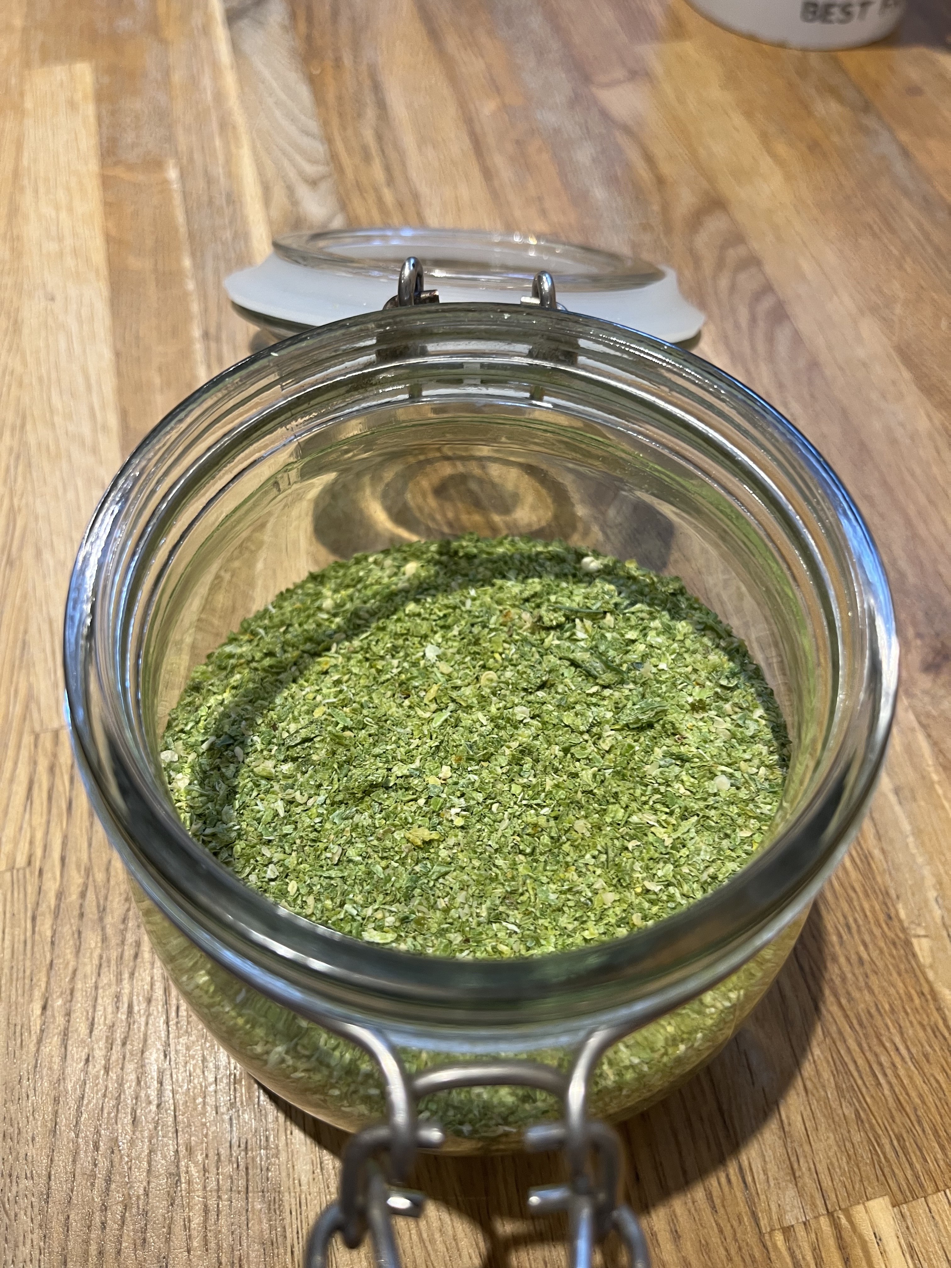 I sometimes break it down, I pick, wash, and leave to dry one day, and then chop, process, and bottle the next.